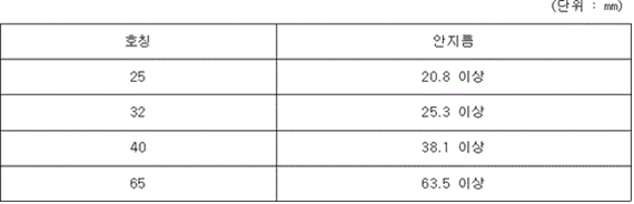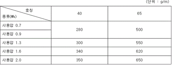 <개정 2019. 1. 10.> 2. 길이 3 m 의 호스를 곧게 한 상태로 다음 표에 기재된 수치의 수압을 1분간 가하여도 파단되지 아니하여야 한다.