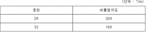 <개정 2019. 1. 10.> 3. 길이 3.7 m 의 호스에 0부터 사용압력까지의 압력변동을 연속하여 2 000 회 가한 다음 사용압력을 가하는 경우 1분간 견디어야 한다. 4. 호스의 장착부는 호칭에 따라 3.0 ㎫의 수압력을 5분간 가하여도 이탈되지 아니하여야 한다. 제19조(신장률) 호스는 그 종류에 따라 사용압의 2배에 해당하는 수압력을 가하는 경우 호스의 신장은 0.1 ㎫의 수압에서 측정한 호스길이를 기준으로 하여 단일 쟈켓트 구조는 10 %, 이중 쟈켓트 구조는 8 % 이하이어야 한다.<개정 2024. 4. 19.> 제20조(비틀림) 호스의 비틀림은 오른쪽 방향의 것이어야 하며 그 종류에 따라 사용압을 가하는 경우 호스의 비틀림이 그 종류 및 호칭에 따라 다음 표에 기재된 수치 이하이어야 한다.