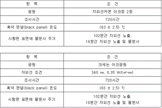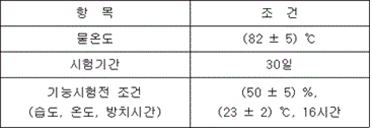 2. 침수시험은 아래 표의 조건으로 시험장치를 구성하여 시험한다.