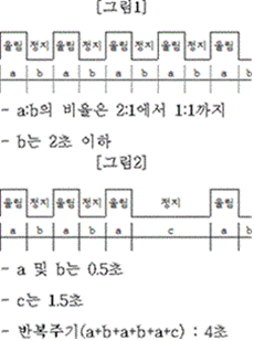 3. 제5조의2제5호(주전원이 건전지인 경우에 한함) 4. 제5조의2제6호(주전원이 건전지인 경우에 한함, 무선식은 제외) 제6조(부품의 구조 및 기능) 감지기에 다음 각 호의 부품을 사용하는 경우 해당 각 호에 적합하거나 이와 동등 이상의 성능이 있는 것이어야 한다. 1. 스위치 가. 조작이 쉽고 작동이 확실하여야 하며, 정지점이 명확하고 적정하여야 한다. 나. 삭제 다. 삭제 2. 표시등 가. 삭제 나. 소켓은 접촉이 확실하여야 하며 쉽게 전구를 교체할 수 있도록 부착하여야 한다. 다. 전구는 2개 이상을 병렬로 접속하여야 한다. 다만, 방전등 또는 발광다이오드의 경우에는 그러하지 아니하다. 라. 전구에는 적당한 보호 덮개를 설치하여야 한다. 다만, 발광다이오드의 경우에는 그러하지 아니하다.<개정 2024. 4. 9.> 마. 작동표시장치의 표시등은 주변조도가 (500 ± 25) ㏓인 조건에서 감지기 정면으로부터 6 m 떨어진 위치에서 식별되어야 한다.<개정 2024. 4. 9.> 3. 퓨즈 가. 퓨즈 등 과전류보호장치는 「산업표준화법」 제15조제2항에 따라 한국산업표준에 적합한 것임을 나타내는 표시를 한 제품, 「전기용품 및 생활용품 안전관리법」에 따른 안전인증대상제품 또는 국제적 공인기관으로부터 인증을 받은 제품을 사용하여야 한다.<개정 2017. 12. 6.> 나. 점검 및 교체가 쉬어야 한다. 다. 쉽게 흔들리지 아니하도록 부착하여야 한다. 라. 가목 및 나목에도 불구하고 과전류 보호장치로 자체 복원력에 의한 재용성이 있는 폴리스위치 등을 사용하는 경우에는 그러하지 아니하다.<신설 2024. 4. 9.> 4. 감지기에 내장하는 음향(음성 제외)장치 가. 사용전압의 80 %인 전압에서 소리를 내어야 한다. 나. 사용전압에서의 음압은 무향실내에서 정위치에 부착된 음향장치의 중심으로부터 1 m 떨어진 지점에서 85 ㏈ 이상이어야 한다.<개정 2024. 4. 9.> 다. 사용전압으로 8시간 연속하여 울리게 하는 시험 또는 정격전압에서 3분20초 동안 울리고 6분40초 동안 정지하는 작동을 반복하여 합산한 울린 시간이 20시간이 되도록 시험하는 경우 그 구조 또는 기능에 이상이 생기지 않아야 한다. 5. 삭제 6. <삭제 2001. 12. 15.> 제7조(전원전압변동시의 기능) ① 외부로부터 전원을 공급받는 방식의 감지기는 다음 각 호에 적합하여야 한다.<개정 2024. 4. 9.> 1. 공급되는 전원전압이 정격전압의 ±20 % 범위에서 변동하는 경우 기능에 이상이 생기지 아니하여야 한다.<신설 2024. 4. 9.> 2. 정격전압의 120 %에서 분당 6회의 비율로 50회의 전원공급 및 전원차단을 반복하는 경우 기능에 이상이 생기지 아니하여야 한다.<신설 2024. 4. 9.> ② 감지기에 내장된 건전지를 전원으로 하는 감지기는 건전지의 전압이 건전지 교체전압 범위(제조사 설계값)의 하한값으로 저하된 경우에도 기능에 이상이 없어야 한다. 제8조(비화재보방지) ① 감지기는 다음 각 호에 대하여 시험하는 경우 작동하지 않아야 한다.<개정 2015. 3. 19.> 1. 주위온도 (23 ± 2) ℃인 조건을 유지하며 상대습도 (20 ± 5) %에서 (90 ± 5) %인 상태로 급격하게 3회 변경 투입을 반복하는 경우<개정 2015. 3. 19.> 2. 감지기에 분당 6회의 비율로 순간적인 감지기 공급전원의 차단을 반복하는 경우<개정 2015. 3. 19.> ② 광전식 기능을 가진 감지기는 다음 각 호에 노출되는 경우에 작동하지 않아야 한다.<신설 2015. 3. 19.> 1. 백열램프 2. 크세논램프 ③ 광전식 및 이온화식 기능을 가진 감지기는 다음 각 호의 기류를 가하는 경우에 작동하지 않아야 한다.<개정 2024. 4. 9.> 1. (5 ± 0.5) m/s의 풍속(이온화식 기능을 가진 감지기에 한함)<신설 2024. 4. 9.> 2. 0 m/s 와 (1.5 ± 0.2) m/s 사이의 풍속변화<신설 2024. 4. 9.> ④ 불꽃식 기능을 가진 감지기는 다음 각 호에 노출 및 인가되는 경우에 작동하지 않아야 한다.<신설 2015. 3. 19.> 1. 형광램프 2. 할로겐램프 3. 직사 및 반사된 태양광 4. 아크용접 불꽃 5. 충격파전압 6. 그 밖의 외광 7. 흔들리는 주황색의 천(영상분석식에 한함)<신설 2017. 12. 6.> ⑤ 광전식 및 이온화식 기능을 가진 감지기는 다음 각 호의 시험을 실시하는 경우 작동하지 않아야 한다.<신설 2024. 4. 9.> 1. 주위온도 - (20 ± 2) ℃ 및 (70 ± 2) ℃의 온도변화를 10회 반복하는 경우 2. (760 ± 30) mmHg의 기압 조건에서 (50.8 ± 2) mmHg의 기압 변화를 10회 반복하는 경우 제8조의2(전자파적합성) 감지기는 「전파법」 제47조의3제1항 및 「전파법 시행령」 제67조의2에 따라 과학기술정보통신부장관이 정하여 고시하는 「전자파적합성 기준」에 적합하여야 한다.<개정 2017. 12. 6.> 제9조(부속장치) 감지기의 기능에 유해한 영향을 미치는 부속장치를 설치하면 안된다. 제10조(시험조건) 감지기의 시험은 특별히 규정된 경우를 제외하고는 실온이 5 ℃ 이상 35 ℃ 이하이고, 상대습도가 45 % 이상 85 % 이하인 상태에서 실시한다. 제11조(주위온도시험) ① 감지기의 주위온도시험은 전원이 인가된 상태에서 다음 각 호 1의 규정에 의한 시험온도에서 방치하는 경우 작동하지 아니하여야 하며 방치 후 기능에 이상이 생기지 않아야 한다.<개정 2024. 4. 9.> 1. 정온식 성능이 있는 감지기는 -(10 ± 2) ℃에서 공칭작동온도(2 이상 공칭작동온도를 갖는 경우 가장 낮은 공칭작동온도, 이하 제25조에