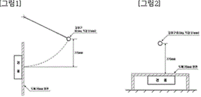 제9조(살수시험) 옥내ㆍ옥외형 경종(방수형은 제외한다)은 일반 사용상태로 부착하고 다음 각 호의 시험을 실시하는 경우 내부에 물이 고이지 않아야 하며 기능 및 절연저항시험에 이상이 생기지 않아야 한다. 1. 맑은 물을 34.5 kPa의 압력으로 3개의 분무헤드를 이용하여 전면 상방에 (45 ± 2)° 각도의 방향에서 시료를 향하여 일률적으로 1시간 동안 물을 분사하는 시험 2. 맑은 물을 138 kPa의 압력으로 분무헤드를 이용하여 전면 하방에 (45 ± 2)° 각도의 방향에서 시료를 향하여 일률적으로 1시간 동안 물을 분사하는 시험 제9조의2(방수시험) 방수형 경종은 (23 ± 2) ℃, 상대습도 (50 ± 2) %의 상태에 24시간 방치한 후 (23 ± 2) ℃의 맑은 물에 48시간 침지시키는 경우 내부에 물이 고이지 않아야 하며 기능 및 절연저항시험에 이상이 생기지 아니하여야 한다. 제10조(절연저항시험) 경종의 절연된 단자간 및 단자와 외함간의 절연저항은 DC 500 V의 절연저항계로 측정하는 경우 20 ㏁이상이어야 한다. 제11조(절연내력시험) 경종의 단자와 외함간의 절연내력은 60 헤르츠(㎐)의 정현파에 가까운 실효전압 500 볼트(V)(정격전압이 60 V를 초과하고 150 V 이하인 것은 1000 V, 정격전압이 150 V를 초과하는 것은 그 정격전압에 2를 곱하여 1000 V를 더한 값)의 교류전압을 가하는 시험에서 1분간 견디는 것이어야 한다. 제11조의2(습도시험) 경종은 다음 각 호의 시험을 하는 경우 구조 및 기능에 이상이 없어야 한다. 1. (40 ± 2) ℃, 상대습도 (93 ± 2) %인 조건에서 전원을 인가하지 않은 상태로 21일간 방치하는 시험 2. (40 ± 2) ℃, 상대습도 (93 ± 2) %인 조건에서 전원을 인가한 상태로 4일간 방치하는 시험 제11조의3(진동시험) 경종은 전원을 인가하지 않은 상태에서 국제전기기술위원회((International ElectrotechnicalCommission,IEC)에서 정한 IEC 60068-2-6의 시험방법에 따라 다음 각 호에 따른 시험을 실시하는 경우 구조 및 기능에 이상이 없어야 한다. 1. 주파수 범위 : 10 ∼ 150 ㎐ 2. 가속도 진폭 : 10 m/s2 3. 축수 : 3 4. 스위프(sweep) 속도 : 1 옥타브/min 5. 스위프 사이클 수 : 축 당 20 제11조의4(내식시험) 경종은 5 리터(L)의 시험기기 중에 농도 40 그램 매 리터(g/L) 되는 티오황산나트륨 수용액 500 mL를 넣고 1규정농도의 황산 156 mL를 물 1 L에 용해한 용액을 1일 2회 10 mL씩 가하여 발생하는 아황산가스 중에 4일간 방치한 다음, 상온상습 조건에서 4일간 놓아둔 후 기능시험 및 절연저항시험을 실시하는 경우 이상이 생기지 않아야 한다. 제11조의5(분진시험) 경종을 내부용적이 0.09 세제곱미터(㎥)가 되는 밀폐된 상자 내에 정상위치로 부착하고 KS A 0090(시험용 분체 및 시험용 입자)의 5종 플라이애쉬 60 g을 상자속에 넣고 풍속이 0.25 m/s로 압축된 공기 또는 통풍기로 15분간 교반(攪拌)을 실시한 후 기능에 이상이 생기지 않아야 한다. 제12조(표시) 경종의 표시명판에는 다음 각 호의 사항을 보기 쉬운 부위에 쉽게 지워지지 아니하도록 표시하여야 한다. 다만, 제9호와 제11호는 포장 또는 취급설명서에 표시할 수 있다. 1. 종별 및 형식 2. 형식승인번호 3. 제조연월 및 제조번호 4. 제조업체명 또는 상호 5. 특수하게 취급하여야 하는 경우에는 그 주의사항 및 사용온도범위(제6조 단서규정에 의하여 시험온도범위 기준보다 강화된 온도범위를 사용온도범위로 하고자 하는 경우에 한함) 6. 극성이 있는 단자에는 극성을 표시하는 기호 7. 정격전압 및 정격전류 8. 방수형 또는 방폭형인 것은 "방수형" 또는 "방폭형"이라는 문자 별도표시 9. 설치 및 취급상의 주의사항 등 10. <삭제 1999. 8. 3.> 11. 품질보증에 관한 사항[보증기간, 보증내용, 에프터 서비스(A/S)방법, 자체검사확인증 등] 12. 삭제 13. 접속가능한 수신기 형식번호(무선식 경종에 한함) 14. 접속가능한 중계기 형식번호(무선식 경종에 한함) 15. 1 m 설계 음압(100 dB 이상인 경우에 한한다) 제12조의2(표시내구성시험) 표시명판은 다음 각 호에 따른 시험을 각각 실시한 후 알코올에 적신 천 조각을 이용하여 18 N의 힘으로 문지르는 경우 표기사항이 지워지지 않아야 하며 식별이 가능하여야 한다. 1. 표시명판을 물에 48시간 동안 침지할 것 2. 표시명판을 (80 ± 2) ℃의 공기 중에 10일 동안 방치할 것 제13조(시험세칙) 「소방산업의 진흥에 관한 법률」 제14조에 따른 한국소방산업기술원은 이 기준의 운영방법, 형식시험방법 및 제품검사방법 등에 관한 세부사항인 시험세칙을 정하여 소방청장 승인을 받아 운영할 수 있다. 제14조(재검토기한) 소방청장은 「훈령ㆍ예규 등의 발령 및 관리에 관한 규정」에 따라 이 고시에 대하여 2023년 1월 1일 기준으로 매 3년이 되는 시점(매 3년째의 12월 31일까지를 말한다)마다 그 타당성을 검토하여 개선 등의 조치를 하여야 한다. 부칙 <제2024-7호, 2024. 4. 9.> 제1조(시행일) 이 고시는 발령한 날부터 시행한다. 제2조(형식승인에 관한 일반적인 경과조치) ① 이 고시 시행 전에 형식승인(형식승인 변경 신청을 포함한다. 이하 같다)을 신청하여 이 고시 시행 당시 그 형식승인 절차가 진행 중인 경우에는 개정규정에도 불구하고 종전의 규정에 따른다. ② 이 고시 시행 전에 종전의 규정에 따라 형식승인을 받은 경