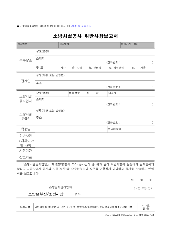 [별지 제28호서식] 소방시설공사 위반사항보고서(소방시설공사업법 시행규칙).hwp