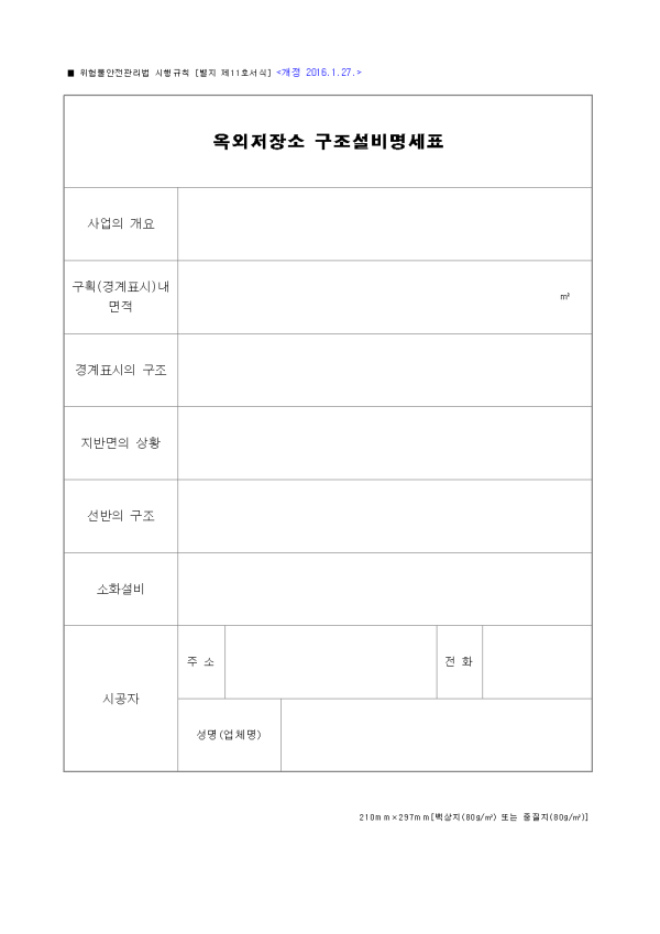 [별지 제11호서식] 옥외저장소 구조설비명세표(위험물안전관리법 시행규칙).hwp