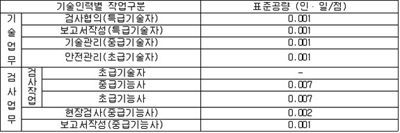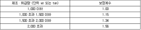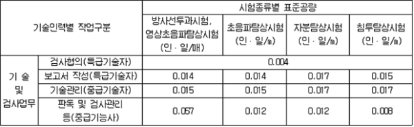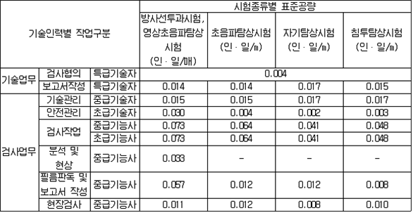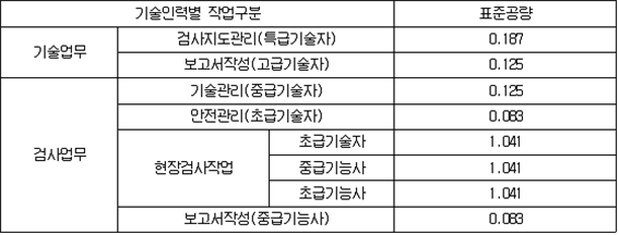 나. 100만ℓ 이상인 탱크의 용접부검사의 표준공량 다. 기초ㆍ지반검사 및 100만ℓ 이상인 탱크의 용접부 검사의 보정계수 라. 암반탱크검사의 표준공량 마. 이중벽탱크의 수압검사 수수료는 규칙 별표 25 제3호의 규정에 따른 수수료의 50%를 적용하며, 규칙 별표 8 Ⅰ제6호 후단의 규정에 의하여 수압검사를 기밀시험과 비파괴시험으로 대신하는 경우에는 제158조제4항의 규정에 따른 기밀시험 수수료의 50%와 용접부에 대한 비파괴시험 수수료를 합한 금액으로 할 것. 이 경우 용접부에 대한 비파괴시험 수수료 산정에 있어서 표준공량은 0.208로 하고, 기술인력별 구분은 중급기술자로 하며, 보정계수는 제158조제4항제1호나목에 의한다. 2. 재시험 수수료는 다음 각목에 의할 것 가. 기초ㆍ지반검사의 재시험 수수료는 최초시험 수수료에 최초시험개소 대비 재시험개소의 비율을 곱한 금액으로 할 것 나. 100만ℓ 이상인 탱크 및 이중벽탱크의 용접부검사의 재시험 수수료는 다음 표에 정한 표준공량을 적용하여 산출한 직접인건비에 50%를 적용할 것 다. 암반탱크검사의 재시험 수수료는 최초시험 수수료의 50%를 적용할 것 3. 기초ㆍ지반검사 중 표준관입시험을 탱크안전성능검사 신청전에 기술원이 실시한 경우에는 전체 수수료의 70%를 적용할 것 4. 납부액의 1천원 미만은 절사할 것 ② 규칙 별표 25 제3호나목의 규정에 따른 탱크안전성능검사 중 기초ㆍ지반검사, 이중벽탱크에 대한 수압검사, 용접부검사 및 암반탱크검사를 규칙 제12조제5항ㆍ제13조제2항ㆍ제14조제2항 또는 제15조제2항의 규정에 의하여 기술원이 확인하는 방법에 의하여 실시하는 경우의 수수료 산정기준은 다음 각 호와 같다. 1. 기초ㆍ지반검사의 수수료는 최초시험 수수료에 최초시험개소 대비 변경허가에 따른 시험개소의 비율을 곱한 금액으로 할 것 2. 용접부검사의 수수료는 최초시험 수수료에 다음 각목의 규정에 따른 시험종류별 대비율(최초시험량 대비 변경허가에 따른 시험량의 비율을 말한다)의 평균치(이하 "평균대비율"이라 한다)를 곱하여 산출한 금액으로 할 것〈2006. 8. 3 개정〉 가. 평균대비율 = (0.5×자기탐상시험 대비율) + (0.35×방사선투과시험 또는 영상초음파탐상시험 대비율) + (0.15×침투탐상시험 대비율) 나. 대비율은 소수점 이하 셋째자리를 절사할 것 다. 평균대비율은 가목에 의하여 구한 수치가 0.05 이하의 경우에는 0.05로 하며, 0.05를 초과하는 경우 중 소수점 이하 둘째자리가 1을 초과하고 5 이하인 경우에는 소수점 이하 둘째자리에서 올림을 한 수치에서 0.05를 뺀 수치로 하며, 소수점 이하 둘째자리가 5를 초과하거나 0인 경우에는 소수점 이하 둘째자리에서 올림을 한 수치로 할 것〈2007. 12. 3 개정〉 3. 재시험 수수료는 다음 각목에 의할 것 가. 기초ㆍ지반검사의 재시험 수수료는 변경허가에 따른 최초시험 수수료에 변경허가에 따른 최초시험개소 대비 재시험개소의 비율을 곱한 금액으로 할 것 나. 용접부검사의 재시험 수수료는 제1항제1호나목의 표에 정한 표준공량을 적용하여 산출한 직접인건비에 50%를 곱하여 산정 할 것 4. 납부액의 1천원 미만은 절사할 것 5. 이중벽탱크에 대한 수압검사 및 암반탱크검사의 경우에는 제1항의 규정에 따른 설치허가에 따른 탱크성능검사 수수료의 예에 의할 것 제160조(기술원이 실시하는 완공검사의 수수료) ① 규칙 별표 25 제4호의 규정에 따른 기술원이 실시하는 완공검사 중 제조소 또는 일반취급소의 완공검사 수수료 산정기준은 다음 각 호와 같다. 1. 표준공량 및 보정계수는 다음 각목에 의할 것 가. 표준공량 (비고) 소화설비(소화기구를 제외한다)에 대한 검사가 포함될 경우에는 표준공량(현장검사작업에 한한다)에 1.25를 곱한 수치를 표준공량으로 한다. 나. 보정계수 (비고) 지정수량의 단위가 다른 2 이상의 위험물에 있어서는 1kg을 1ℓ로 본다. 2. 재검사 수수료는 최초시험 수수료의 50%를 적용 할 것 3. 납부액의 1천원 미만은 절사할 것 ② 규칙 별표 25 제4호의 규정에 따른 기술원이 실시하는 완공검사 중 옥외탱크저장소의 완공검사 수수료 산정기준은 다음 각 호와 같다. 〈2007. 12. 3 신설〉 1. 표준공량 및 보정계수는 다음 각목에 의할 것 가. 표준공량 (비고) 소화설비(소화기구를 제외한다)에 대한 검사가 포함될 경우에는 표준공량(현장검사작업에 한한다)에 1.25를 곱한 수치를 표준공량으로 한다. 나. 보정계수 2. 변경허가에 따른 완공검사 수수료는 최초시험 수수료의 50%를 적용 할 것 3. 재검사 수수료는 최초시험 수수료의 50%를 적용 할 것 4. 납부액의 1천원 미만은 절사할 것 ③ 규칙 별표 25 제4호의 규정에 따른 기술원이 실시하는 완공검사 중 암반탱크저장소의 완공검사 수수료 산정기준은 다음 각 호와 같다. 〈2007. 12. 3 신설〉 1. 표준공량 및 보정계수는 다음 각목에 의할 것 가. 표준공량 (비고) 소화설비(소화기구를 제외한다)에 대한 검사가 포함될 경우에는 표준공량(현장검사작업에 한한다)에 1.25를 곱한 수치를 표준공량으로 한다. 나. 보정계수 2. 변경허가에 따른 완공검사 수수료는 최초시험 수수료의 50%를 적용 할 것 3. 재검사 수수료는 최초시험 수수료의