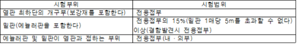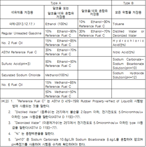 4. 시료컵의 온도를 5분간 설정온도로 유지할 것 5. 시험불꽃을 점화하고 화염의 크기를 직경 4㎜가 되도록 조정할 것 6. 5분 경과 후 개폐기를 작동하여 시험불꽃을 시료컵에 2.5초간 노출시키고 닫을 것. 이 경우 시험불꽃을 급격히 상하로 움직이지 아니하여야 한다. 7. 제6호의 방법에 의하여 인화한 경우에는 인화하지 않게 될 때까지 설정온도를 낮추고, 인화하지 않는 경우에는 인화할 때까지 높여 제3호 내지 제6호의 조작을 반복하여 인화점을 측정할 것 제10조(자연발화성물질 및 금수성물질의 시험방법 및 판정기준) 영 별표 1 비고 제9호의 자연발화성물질의 시험방법 및 판정기준은 제11조의 규정에 의하며 금수성물질의 시험방법 및 판정기준은 제12조의 규정에 따른다. 제11조(자연발화성의 시험방법 및 판정기준) ① 고체의 공기중 발화의 위험성의 시험방법 및 판정기준은 다음 각 호에 의한다.〈2015. 5. 6 개정 1. 시험장소는 온도 20℃, 습도 50%, 기압 1기압, 무풍의 장소로 할 것 2. 시험물품(300㎛의 체를 통과하는 분말) 1㎤를 직경 70㎜인 화학분석용 자기 위에 설치한 직경 90㎜인 여과지의 중앙에 두고 10분 이내에 자연발화 하는지 여부를 관찰할 것. 이 경우 자연발화하지 않는 경우에는 같은 조작을 5회 이상 반복하여 1회 이상 자연발화 하는지 여부를 관찰한다. 3. 분말인 시험물품이 제2호의 방법에 의하여 자연발화하지 않는 경우에는 시험물품 2㎤를 무기질의 단열판 위에 1m의 높이에서 낙하시켜 낙하 중 또는 낙하 후 10분 이내에 자연발화 여부를 관찰할 것. 이 경우 자연발화하지 않는 경우에는 같은 조작을 5회 이상 반복하여 1회 이상 자연발화 하는지 여부를 관찰한다. 4. 제1호 내지 제3호의 방법에 의한 시험결과 자연발화 하는 경우에는 자연발화성물질에 해당하는 것으로 할 것 ② 액체의 공기중 발화의 위험성의 시험방법 및 판정기준은 다음 각 호에 의한다. 1. 시험장소는 온도 20℃, 습도 50%, 기압 1기압, 무풍의 장소로 할 것 2. 시험물품 0.5㎤를 직경 70㎜인 자기에 20㎜의 높이에서 전량을 30초간 균일한 속도로 주사기 또는 피펫을 써서 떨어뜨리고 10분 이내에 자연발화 하는지 여부를 관찰할 것. 이 경우 자연발화 하지 않는 경우에는 같은 조작을 5회 이상 반복하여 1회 이상 자연발화 하는지 여부를 관찰한다. 3. 제2호의 방법에 의하여 자연발화 하지 않는 경우에는 시험물품 0.5㎤를 직경 70㎜인 자기 위에 설치한 직경 90㎜인 여과지에 20㎜의 높이에서 전량을 30초간 균일한 속도로 주사기 또는 피펫을 써서 떨어뜨리고 10분 이내 자연발화 하는지 또는 여과지를 태우는지 여부(여과지가 갈색으로 변하면 태운 것으로 본다. 이하 이 호에서 같다)를 관찰할 것. 이 경우 자연발화하지 않는 경우 또는 여과지를 태우지 않는 경우에는 같은 조작을 5회 이상 반복하여 1회 이상 자연발화 하는지 또는 여과지를 태우는지 여부를 관찰한다. 4. 제1호 내지 제3호의 방법에 의한 시험결과 자연발화 하는 경우에 또는 여과지를 태우는 경우에는 자연발화성물질에 해당하는 것으로 할 것 제12조(금수성의 시험방법 및 판정기준) ① 물과 접촉하여 발화하거나 가연성가스를 발생할 위험성의 시험방법은 다음 각 호에 의한다 1. 시험장소는 온도 20℃, 습도 50%, 기압 1기압, 무풍의 장소로 할 것 2. 용량 500㎤의 비이커 바닥에 여과지 침하방지대를 설치하고 그 위에 직경 70㎜의 여과지를 놓은 후 여과지가 뜨도록 침하방지대의 상면까지 20℃의 순수한 물을 넣고 시험물품 50㎣를 여과지의 중앙에 둔(액체 시험물품에 있어서는 여과지의 중앙에 주사한다) 상태에서 발생하는 가스가 자연발화 하는지 여부를 관찰할 것. 이 경우 자연발화하지 않는 경우에는 같은 방법으로 5회 이상 반복하여 1회 이상 자연발화 하는지 여부를 관찰한다. 3. 제2호의 방법에 의하여 발생하는 가스가 자연발화하지 않는 경우에는 당해 가스에 화염을 가까이하여 착화하는지 여부를 관찰할 것 4. 제2호의 방법에 의하여 발생하는 가스가 자연발화하지 않거나 가스의 발생이 인지되지 않는 경우 또는 제3호의 방법에 의하여 착화되지 않는 경우에는 시험물품 2g을 용량 100㎤의 원형 바닥의 플라스크에 넣고 이것을 40℃의 수조에 넣어 40℃의 순수한 물 50㎤를 신속히 가한 후 직경 12㎜의 구형의 교반자 및 자기교반기를 써서 플라스크내를 교반하면서 가스 발생량을 1시간마다 5회 측정할 것 5. 1시간마다 측정한 시험물품 1kg당의 가스 발생량의 최대치를 가스 발생량으로 할 것 6. 발생하는 가스에 가연성가스가 혼합되어 있는지 여부를 검지관, 가스크로마토그라프 등에 의하여 분석할 것 ② 제1항의 방법에 의한 시험결과 자연발화 하는 경우, 착화하는 경우 또는 가연성 성분을 함유한 가스의 발생량이 200ℓ 이상인 경우에는 금수성물질에 해당하는 것으로 한다.〈2006. 8. 3 개정〉 제13조(인화성액체의 인화점 시험방법 등) ① 영 별표 1 비고 제11호의 규정에 따른 인화성액체의 인화점 측정은 제14조의 규정에 따른 방법으로 측정한 결과에 따라 다음 각 호에 정한 것에 의한다 1. 측정결과가 0℃ 미만인 경우에는 당해 측정결과를 인화점으로 할 것 2. 측