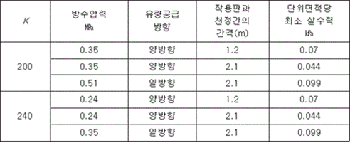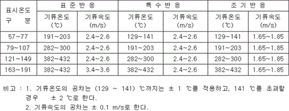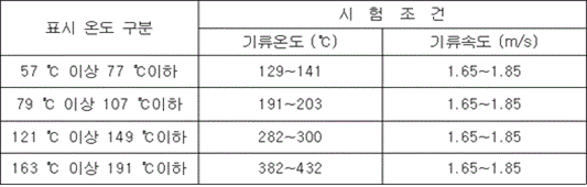 제1장 공통사항 제1조(목적) 이 기준은 「소방시설 설치 및 관리에 관한 법률」 제37조제5항에서 소방청장에게 위임한 스프링클러헤드의 형식승인 및 제품검사의 기술기준에 관한 사항을 규정함을 목적으로 한다.<개정 2013. 7. 25., 2015. 1. 15., 2017. 12. 28.> 제2조(용어의 정의) 이 기준에서 사용하는 용어의 정의는 다음과 같다. 1. "스프링클러헤드"란 화재 시 가압된 물이 내뿜어져 분산됨으로써 소화기능을 하는 헤드를 말한다. 2. "폐쇄형스프링클러헤드"란 정상상태에서 방수구(放水口)를 막고 있는 감열체가 일정온도에서 자동적으로 파괴ㆍ용해 또는 이탈됨으로써 방수구가 개방되는 스프링클러헤드를 말한다. 3. "개방형스프링클러헤드"란 감열체 없이 방수구가 항상 열려 있는 스프링클러헤드를 말한다. 4. <삭제> 5. "측벽형스프링클러헤드"란 가압된 물이 분사될 때 축심을 중심으로 한 반원상에 균일하게 분산시키는 헤드를 말한다. 6. "반사판"이란 스프링클러헤드의 방수구에서 유출되는 물을 세분시키는 작용을 하는 것을 말한다. 7. "프레임(frame)"이란 스프링클러헤드의 나사부분과 반사판을 연결하는 이음쇠 부분을 말한다. 8. "감열체"란 정상상태에서는 방수구를 막고 있으나 열에 의하여 일정한 온도에 도달하면 스스로 파괴ㆍ용해되어 헤드로부터 이탈됨으로써 방수구가 열려 스프링클러헤드가 작동되도록 하는 부분을 말한다. 9. "퓨지블링크(fusible link)"란 감열체 중 이융성금속으로 융착되거나 이융성물질에 의하여 조립된 것을 말한다. 10. "유리벌브"란 감열체 중 유리구 안에 액체 등을 넣어 봉한 것을 말한다. 11. "표시온도"란 폐쇄형스프링클러헤드에서 감열체가 작동하는 온도로서 미리 헤드에 표시한 온도를 말한다. 12. "최고주위온도"란 폐쇄형스프링클러헤드의 설치장소에 관한 기준이 되는 온도로서 다음 식에 의하여 구하여진 온도를 말한다. 다만, 헤드의 표시온도가 섭씨 75도 미만인 경우의 최고주위온도는 다음 등식에 불구하고 섭씨 39도로 한다. 13. "설계하중"이란 폐쇄형스프링클러헤드에서 방수구를 막고 있는 감열체가 정상상태에서 이탈하지 못하게 하기 위하여 헤드를 조립할 때 헤드에 가하여지도록 미리 설계된 하중을 말한다. 14. "방수압력"이란 별도 1의 정류통에 의하여 측정한 방수시의 정압을 말한다. 15. "화재조기진압용스프링클러헤드"란 특정 높은 장소의 화재위험에 대하여 조기에 진화할 수 있도록 설계된 스프링클러헤드를 말한다. 16. "건식스프링클러헤드"란 물과 오리피스가 배관에 의해 분리되어 동파를 방지할 수 있는 스프링클러헤드를 말한다. 17. 삭제 <2016. 4. 1.> 18. 삭제 <2016. 4. 1.> 19. 삭제 <2016. 4. 1.> 20. <삭제> 21. "반응시간지수(response time index: RTI)"란 기류의 온도ㆍ속도 및 작동시간에 대하여 스프링클러헤드의 반응을 예상한 지수로서 아래 식에 의하여 계산하고(mㆍs) 0.5를 단위로 한다. 22. "표준방향"이란 대칭 감열체인 경우에는 공기의 흐름이 유수방향과 프레임의 평면이 서로 직각이 되는 방향을, 비대칭 감열체인 경우에는 공기의 흐름이 유수방향과 반응시간이 가장 짧게 소요되는 프레임의 평면과 직각을 이루는 방향(별도 7 참조)을 말한다. 23. "최악의 방향"이란 공기의 흐름과 유수방향이 서로 수평이 되도록 설치되어 감열체와 기류의 접촉이 부속품에 의해 방해되게 설치되어 반응시간지수가 가장 큰 방향(별도 7 참조)을 말한다. 24. "주거형스프링클러헤드"란 폐쇄형헤드의 일종으로 주거지역의 화재에 적합한 감도ㆍ방수량 및 살수분포를 갖는 헤드를(간이형스프링클러헤드를 포함한다) 말한다. 25. "라지드롭형(large-drop type) 스프링클러헤드"란 동일 조건의 수압력에서 큰 물방울을 방출하여 화염의 전파속도가 빠르고 발열량이 큰 저장창고 등에서 발생하는 대형화재를 진압할 수 있는 헤드를 말한다. 26. <삭제> 27. "표준반응, 특수반응, 조기반응"이란 스프링클러헤드의 감도를 반응시간지수에 따라 구분한 것을 말한다. 28. "윈도우 스프링클러헤드"는 실내화재로부터 외벽에 설치된 유리창을 보호하기 위해 설치하는 헤드를 말한다.<신설 2024. 8. 28.> 제3조(구조) ① 스프링클러헤드(이하 "헤드"라 한다)의 구조는 다음 각 호에 적합하여야 한다. 1. 배관에 부착하는 등 취급할 때 기능에 영향을 미치는 손상 또는 이상이 생기지 않아야 한다. 2. 작동 시에 분해되는 모든 부분은 물의 분사를 방해하지 않도록 분해되고 떨어져 나가야 한다. 3. 조립된 헤드의 각 부분에 가하여지는 하중을 임의로 조작할 수 없도록 조치되어야 한다. 4. 물속의 이물질(배관내의 물때ㆍ모래ㆍ진흙 등을 말한다)이나 공기 중의 먼지ㆍ기름ㆍ증기ㆍ분진 등의 부유물에 의하여 기능에 이상이 생기지 않는 구조이어야 한다. ② 헤드의 부착나사는 KS B 0222(관용 테이퍼 나사)중 다음 표의 헤드 구분에 따른 부착나사 또는 이에 상당하는 호칭 이상의 관용 테이퍼 나사이어야 하며, 보관ㆍ운반 등의 경우 손상되지 않도록 적합한 보호장치를 하여야 한다. ③ 차폐판을 부착하는 헤드는 차폐판의 끝부근에서 감열체의 밑부분을 연결하는 선의 보호각은 45도 이하이어야 한다.<신설 1997. 12. 6.> 